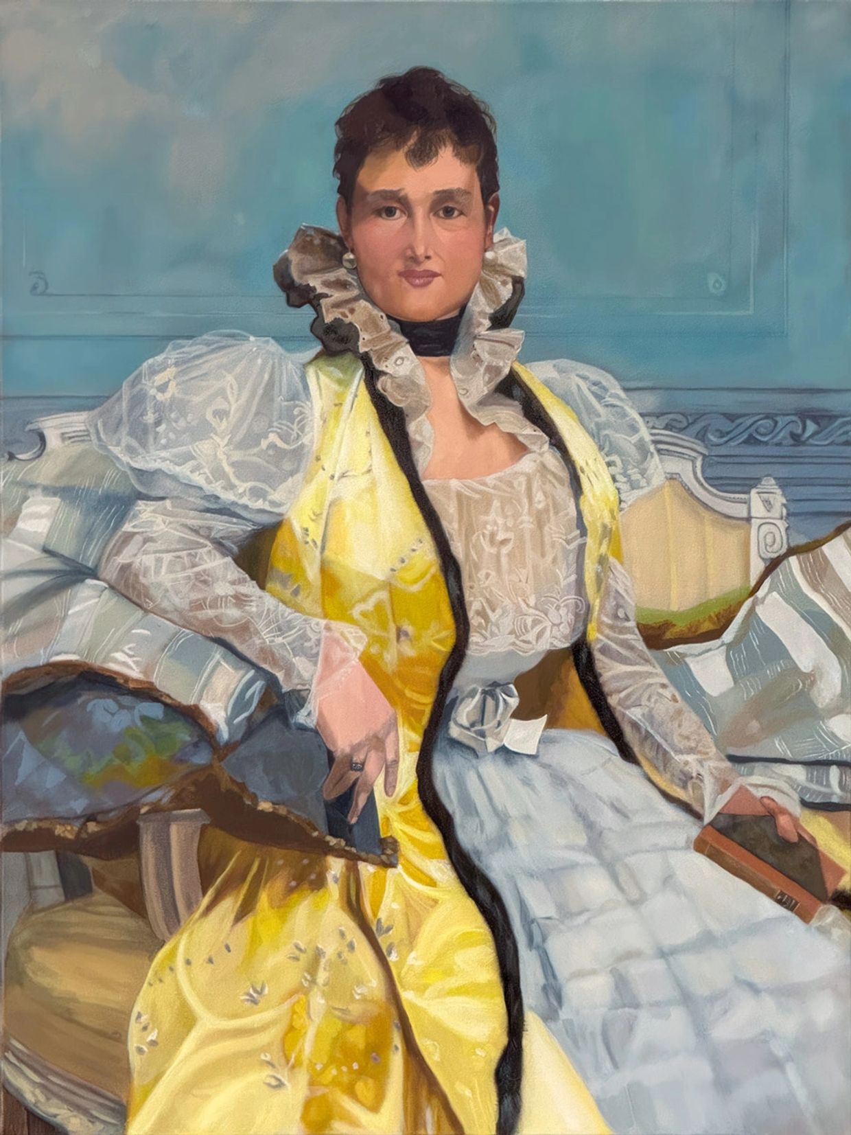 This work is a personal study of François Flameng's 1898 portrait of Grand Duchess Maria Pavlovna. The artist preserves the elegance of Flameng's original—its delicate lacework, soft tonal transitions, and aristocratic poise—while infusing it with her own painterly sensibility. The result is both homage and exercise in mastery, reflecting a reverence for classical technique and the endurance of historical portraiture as a living art form.